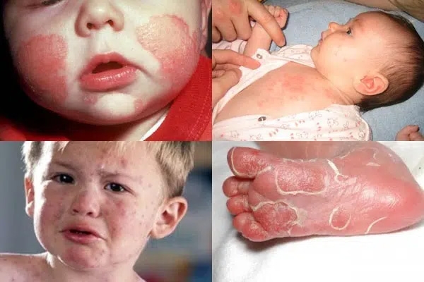 Đấy là dấu hiệu của giang mai bẩm sinh sớm, xuất hiện trong 2 năm đầu.