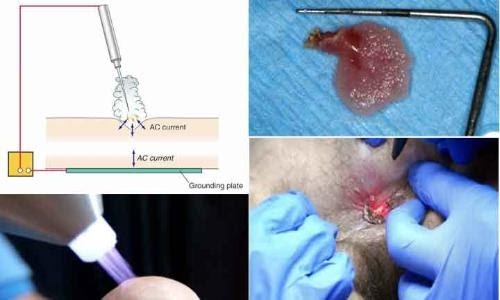 - Đốt điện: Là phương pháp sử dụng 2 đầu cực tạo ra nhiệt lượng tập trung vào đầu đốt nhỏ để cắt bỏ lớp mụn sùi, u nhú.